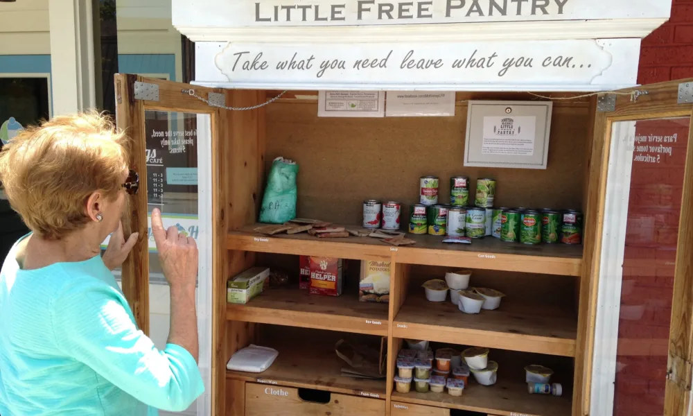 - Add an inviting message. Something simple like, “Take what you need, leave what you can.”